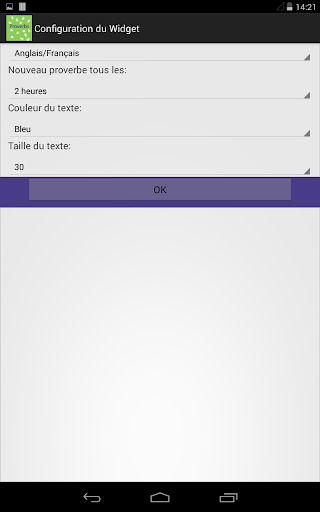 - Fréquence de changement de proverbes (1h, 2h, 4h, 6h, par jour, par semaine).