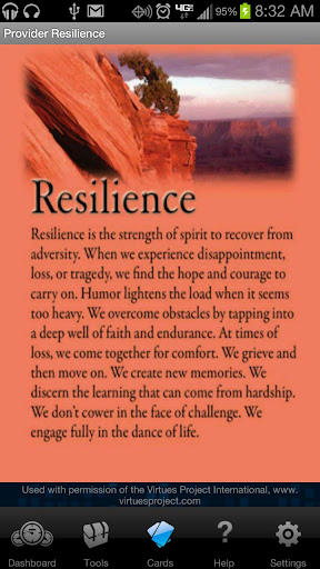 Provider Resilience also features stress-busting and compassion satisfaction-building tools. Videos by service members describing the positive impact health care providers had in their battles with stigma, depression and other issues help users remember why they do what they do. Stretches, daily reflection cards, and Dilbert comics give users a break from daily stress.