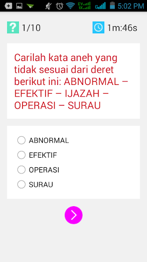 Banyak soal dengan berbagai jebakan yang dibuat oleh pihak penguji untuk mengetahui kemampuan anda berkelit. Oleh karena itu, sebelum anda mengerjakan soal-soal tes yang sesungguhnya, sebaiknya anda berlatih dan mempelajari terlebih dahulu contoh-contoh dan metode mengerjakan soal Psikotes dengan menggunakan aplikasi ini.