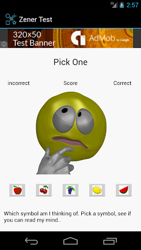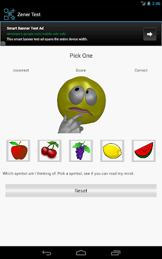 Measure you psychic powers using the ESP cards, symbol test, fruit test, or color test.