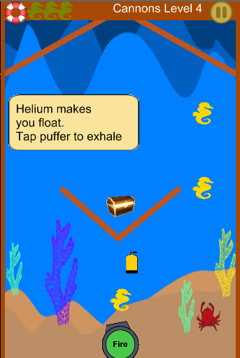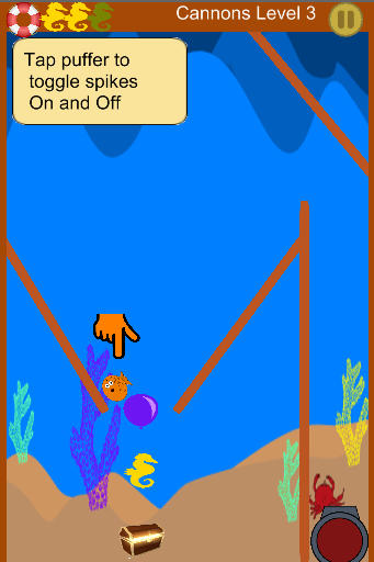 Spike the Puffer Fish, must explore the caves, solve puzzles and rescue the seahorses. Be careful to avoid the Pirate Monkeys or destroy them with your spikes. Spike can use the Helium to get Puffed Up and float to rescue the stranded Seahorses.
