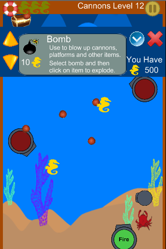 Use bombs to destroy obstacles in the puzzle or to help Spike the Puffer fish stop the Monkeys.