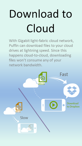 連網飛快: Puffin 對您瀏覽網頁的速度提升,是透過將複雜運算工作從資源有限的手機/平板移到雲端伺服器上處理。如此需要大量資源處理的網頁,也可以在您的手機/平板快速顯示。