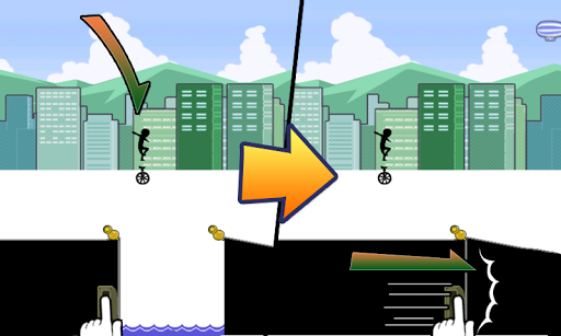 Let you change the terrain with your fingers , pull the person , makes survived longer at 1 meter runs on a unicycle "human"