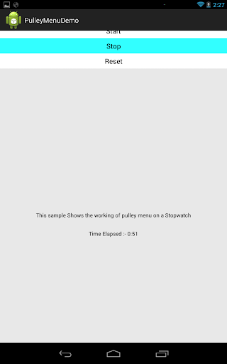 This is a demo application showing the working of the pulley menu on android.