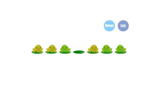 Faça com que os sapos amarelos passem para a direita, e os sapos verdes para a esquerda.