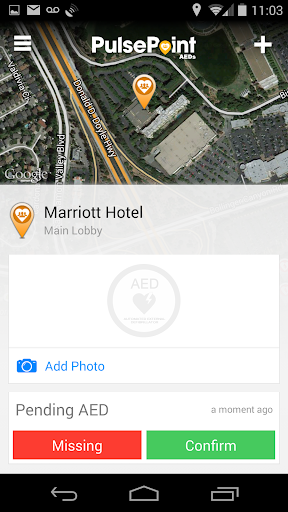 You and PulsePoint AED can help strengthen the chain of survival for cardiac arrest victims. Download PulsePoint AED for free and use it to report AED locations wherever you see one. Snap a picture, make some quick notes, and the information is stored for local authorities to verify. After that, the AED location data is made available to anyone using the PulsePoint citizen responder app (also available for free in the Google Play store). PulsePoint Respond is the app that alerts citizen responders who know CPR to local emergencies near them and also to the location of the nearest AED.