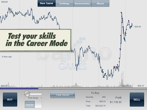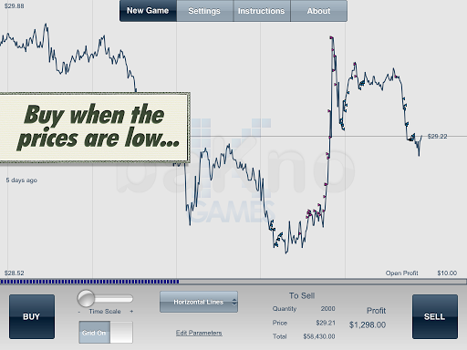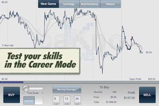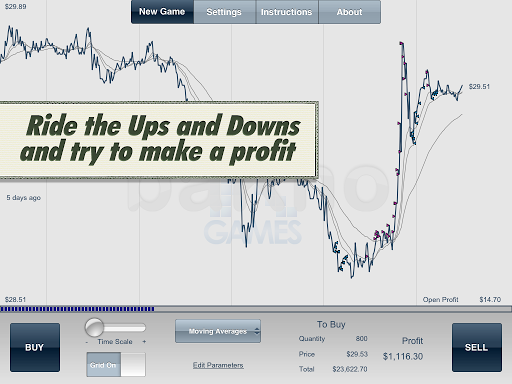 Once the game starts, you will battle the price movements of the stock by buying and selling shares at will, and your sole objective is to make a profit. To do that, you will not only use your keen predictive trader eye, but also a few assisting indicators included in the game.