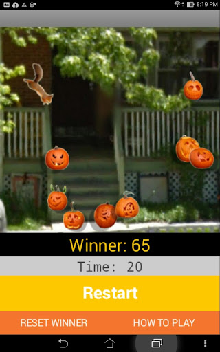 Hint: The scent of freshly carved pumpkins travels through the air randomly. Think like a squirrel and fly one step ahead of those tricky jack-o-lanter's. Astound yourself with your skill level and unique strategy of movement.
