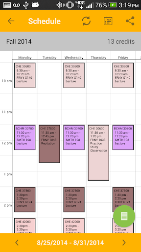 - Week at a Glance schedule