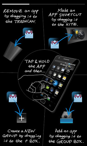 Pure Breeze is available in two versions, Lite and Full, and works with Android 2.1, 2.2, and 2.3. The Lite version is free and has the same features as the full version, but with some limitations on the number of items you can organize. You can easily switch between Pure Breeze and your default home screen by a simple change in the Settings application.