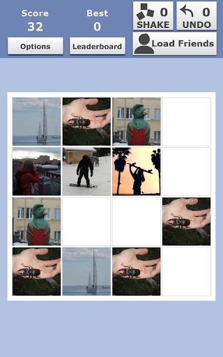 Swipe to move all tiles. When two tiles with the same image touch, they merge into one. Your task is to survive as long as possible! Load avatars friends using "Load Friends" button and do not forget about the UNDO function and SHAKE! Good luck!