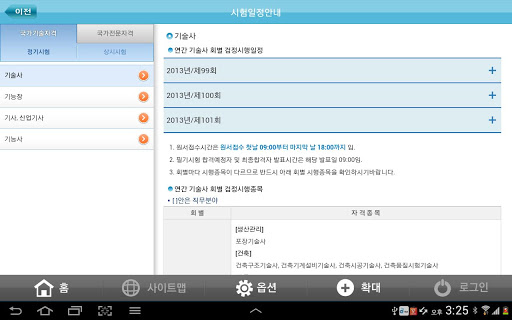 1. 시험일정/자격요건 - 시험일정안내, 응시자격안내, 수수료안내, 시험면제정보, 필기/실기시험안내, 자격증발급안내