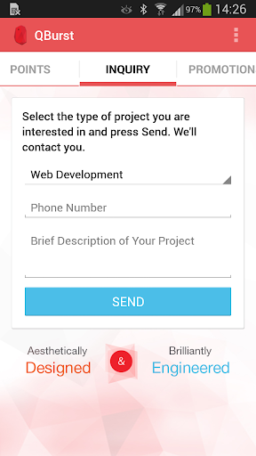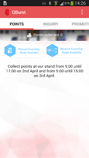 - you can enter QBurst challenge by collecting promo points (via iBeacon or QR code)