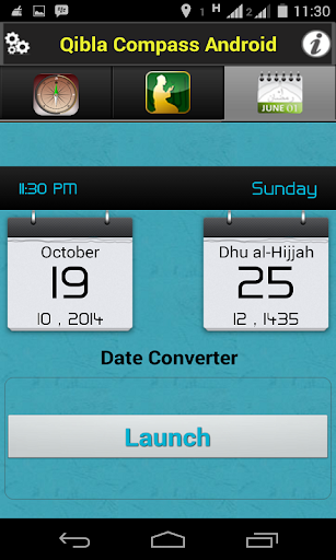 Qibla Compass Android adalah aplikasi 3 in 1 dengan Kompas Qiblat + Doa Waktu + Tahun Hijriah Islam danTanggal Converter.