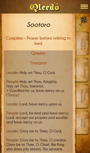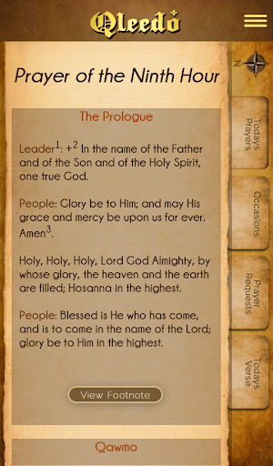 At its core, Qleedo points users to the appropriate prayer indexed to the church calendar. The season, festival, and hour are programmed so that the prescribed text displays in the right language. Saints are prominently featured, and their names auto-populate in the right place. The biblical text is included with easy search. Helpful, scripture based thoughts and study aids are readily present. Eventually, church music will be offered, properly indexed to time and text.
