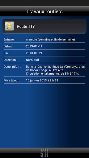 • les événements majeurs en cours sur le réseau routier entraînant des entraves importantes (accidents, inondations, congestion majeure, etc.);