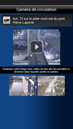 • les images des caméras de circulation (grandes régions du Québec et postes frontaliers);