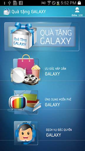 "Quà tặng Galaxy", nơi cung cấp các chương trình khuyến mãi từ các thương hiệu nổi tiếng trong lĩnh vực: ẩm thực, giải trí, mua sắm, làm đẹp,..các đặc quyền khác về ứng dụng thông minh, và các thông tin về hệ thống trung tâm bảo hành trên toàn quốc...