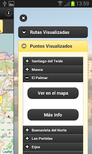 El conjunto de atractivos turísticos están claramente diferenciados en dos grupos principales: Rutas y Puntos de Interés. La aplicación permite visualizar, filtrar y recorrer los distintos puntos y rutas del sistema. Cabe destacar que la aplicación está diseñada para utilizarse en entornos donde la cobertura de datos no está disponible, de forma que aun careciendo de la misma, el servicio funciona perfectamente.
