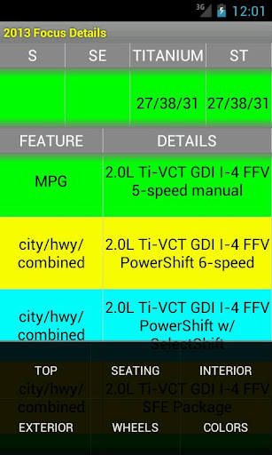 The top table is your friend, click on a Trim Level and another scrollable table comes up with just its info.
