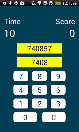 Enter the right number combination as quickly as possible to prevent the timer reaching zero. Correctly entered numbers increase your score and extend the countdown timer.