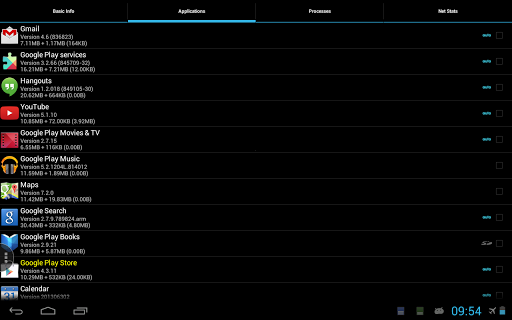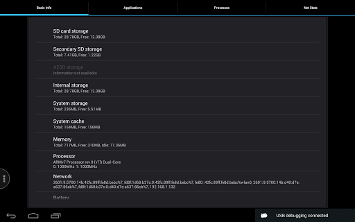 快速查看系統內存,SD存儲,處理器,當前執行進程以及已安裝的應用程式等資訊,并允許快速備份應用程式至SD存儲及發送系統報告。