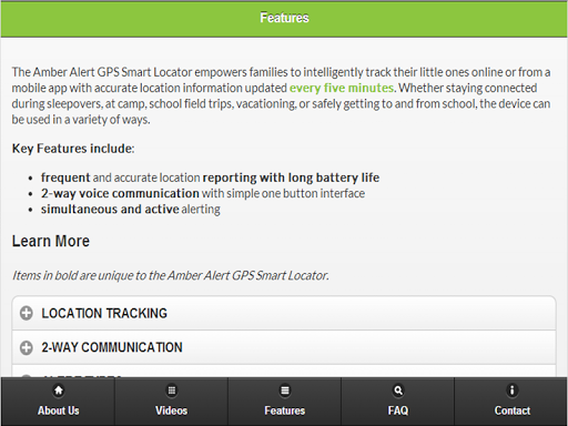 · Highlights of Key Features Unique to the Amber Alert GPS Smart Locator