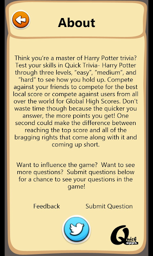 Think you’re a master of Harry Potter trivia? Test your skills in Quick Trivia-Harry Potter through four different levels (easy, medium, hard, and INSANE) to see how you hold up. Compete against users from all across the world to make it into the top ten. Don’t waste time though because the quicker you answer, the more points you get! One second could make the difference between bragging about being in the top ten and wishing you were. Also, the more difficult level you choose the more points you earn! You can purchase the INSANE level, which will earn you the most amount of points per question. With over 75 questions in easy, medium, hard and 50 questions in insane, you will rarely see the same question twice!