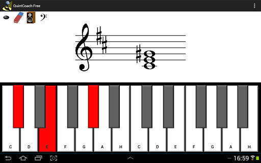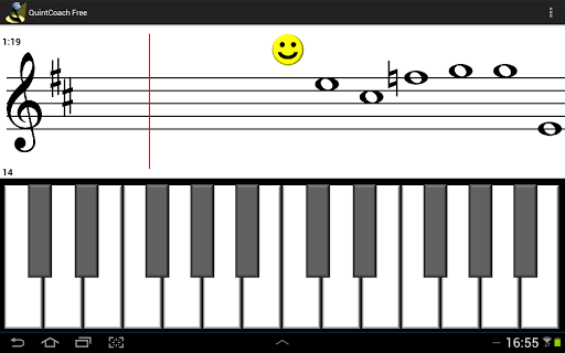 QuintCoach Free is a music note learning software with a focus on piano keys. With QuintCoach Free you are able to learn music notes easily, wherever you want and whenever you want. QuitCoach Free supports violin clef as well as bass clef and you even can set different tonalities! The software gives you three options to find your way into the world off notes. The first step is for orientation.- you have your keyboard on your screen and QuintCoach Free shows the notes you play on the stave. Here you also can play accords. The second step will be, that QuintCoach Free generates random notes and you must guess the right key. For orientation you will see beside the note to guess the note you have entered via the keyboard. If you are experienced enough, the third step can be made and QuintCoach Free plays with you a game, where you have to erase flying notes by hitting the right key - but be careful, the keys will fly faster over time and also if you hit the wrong key they will accelerate. With QuintCoach Free learning notes just is fun! The software supports tablet computers as well as handheld devices. You can setup different users so you can store your personal settings. If you want an add free version of this software, check out "QuintCoach". This is the same software, but without any adds.