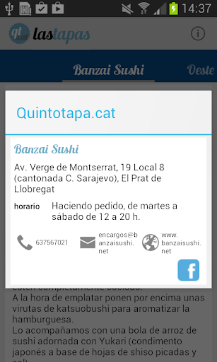 Esta App permite consultar los eventos vigentes, así como sus locales y tapas. Con un simple “clic” podrás acceder al email, el teléfono, o el camino a seguir para llegar al local en cuestión, pues la App está enlazada con el resto de servicios de tu smartphone.