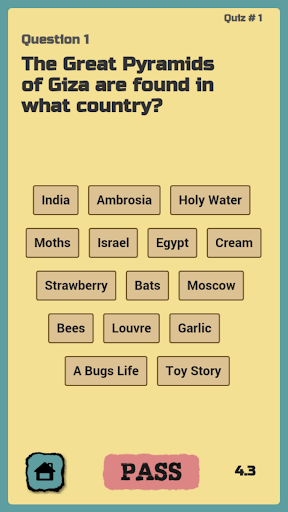 Each quiz is made up of 10 questions and 10 answers (of course), as well as 5 red herrings (false answers).
