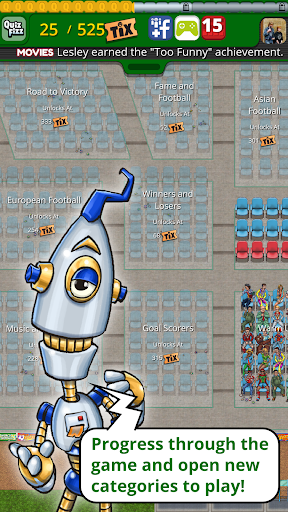 Answer questions to win Tix and fill the stadium with colourful footie fans. Power your way to football trivia glory by tackling fascinating questions in categories like “Goal Scorers”, “Fame and Football”, "World Cup Heroes" and even “Animals and Football”.