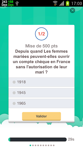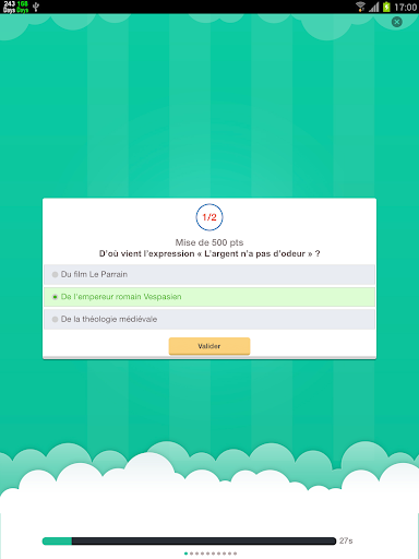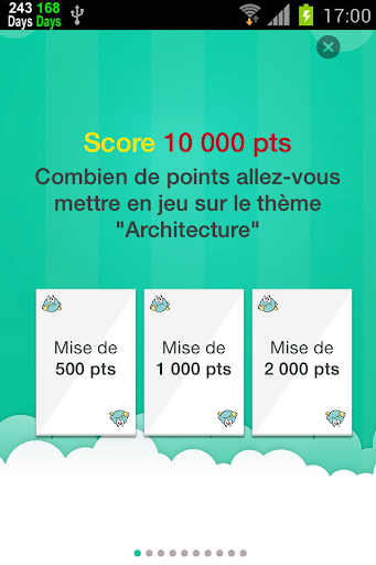Si votre réponse est exacte, vous doublez votre mise ! Si elle est fausse, vous perdez le nombre de points mis en jeu.
