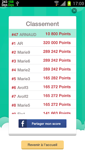 Vous pouvez aussi partagez cette expérience avec vos amis en publiant votre score sur Facebook et en les invitant à rejoindre le jeu pour vous défier.
