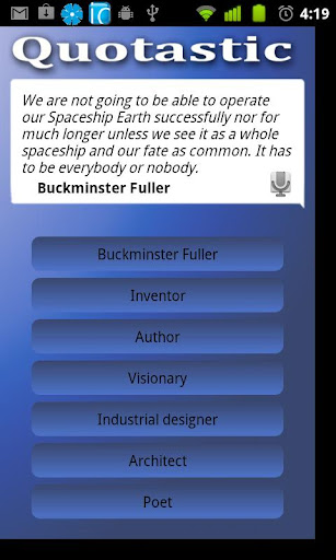Quotastic allows you to find ( and listen to ) witty quotes from the people and about the subjects and professions that interest you most.