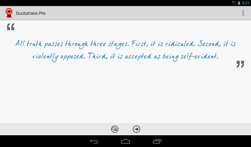 ****** You will find a widget for this app which will show you each quotation every day. "Quotation of the day" ******