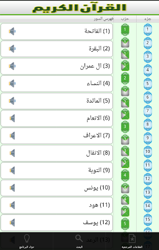 Quran kareem provides the following features: