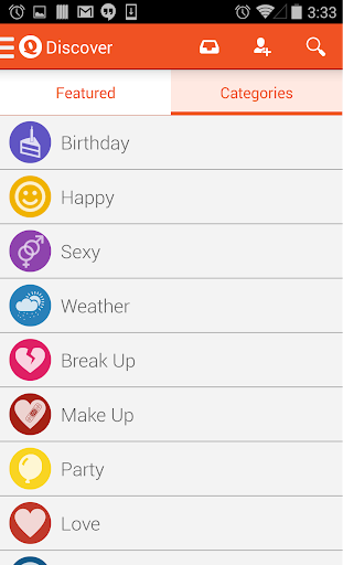 * Categories of pre-selected clips organized around reactions, emotions, and events make it easy for you to choose what to send.