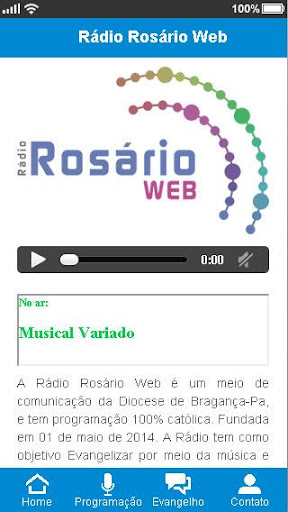 Aplicativo da Rádio Rosário Web, da Diocese de Bragança-Pará, disponibilizado gratuitamente a seus ouvintes.
