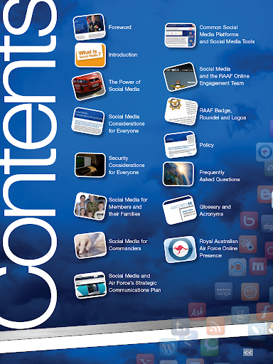 This RAAF Social Media Guide is produced to assist Air Force personnel and their families to safely and appropriately use social media. This guide provides simple, easy-to follow tips to help you use social media tools in your professional and personal life. This guide is for informational purposes only and does not replace official Defence and Air Force Instructions and Policy.