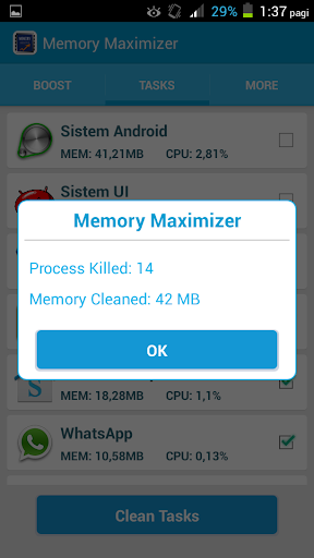RAM Memory Booster runs via your cell phone and cleaning your system memory, boosting the efficiency of your phone or tablet, and increasing your battery power life. And the most beneficial part is, it is absolutely free.