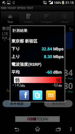 IT総合ニュースサイト「RRB TODAY」で提供しているSPEED TESTのスマートフォン版になります。このアプリは、一定時間内に測定サーバとやりとりしたデータからスループット値の平均を抽出します。3G、Wi-Fi、LTE、WiMAXなどの種別は、計測時に自動判別します。計測履歴の記録が可能。