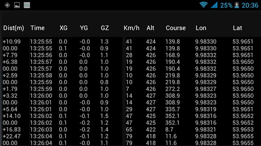Video recording with overlayed data like Speed, high above ground, direction and accelleration values.