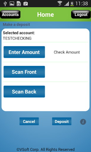 This app requires that you enroll in the Remote Deposit Service with Voyage Federal Credit Union before you may begin. To Apply, please email mobile@voyagefcu.org with your contact information.