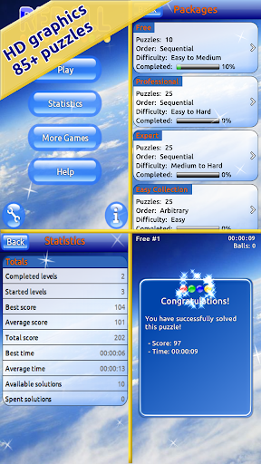 REBALL is a new and very attractive logic game. The goal of the game is to destroy the required number of balls on the board. To destroy balls, create a horizontal, vertical or diagonal line of 3, 4 or 5 balls of the same color. You can move any ball horizontally, vertically, or diagonally. To see possible movements, just click on the ball. Try to solve each puzzle in the shortest time possible to get the best score.