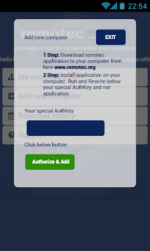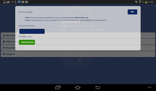 Please download and install pc server program and rewrite AuthKey code to your android app.
