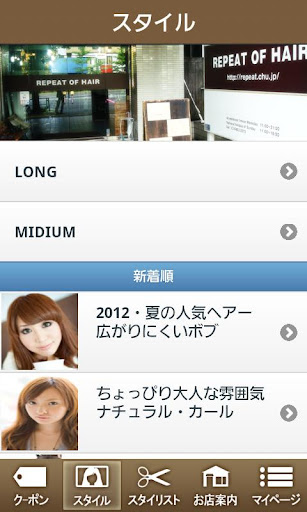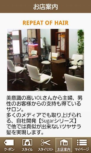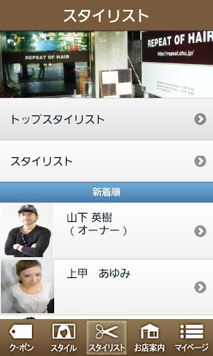 Repeat of Hairが提供する、お得なクーポン情報・スタッフ紹介などがお楽しみ