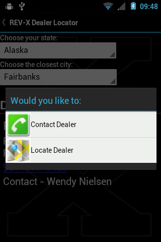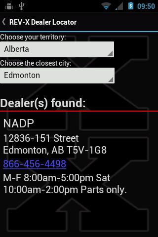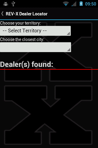 The REV-X Dealer Locator allows you to find dealers that sell your favorite REV-X products. The app allows you to search by city and state to find the dealer nearest you. Once you have found your closest dealer, you can contact them, or locate them using Google Maps.