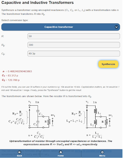 - synthesize capacitive and inductive transformers;